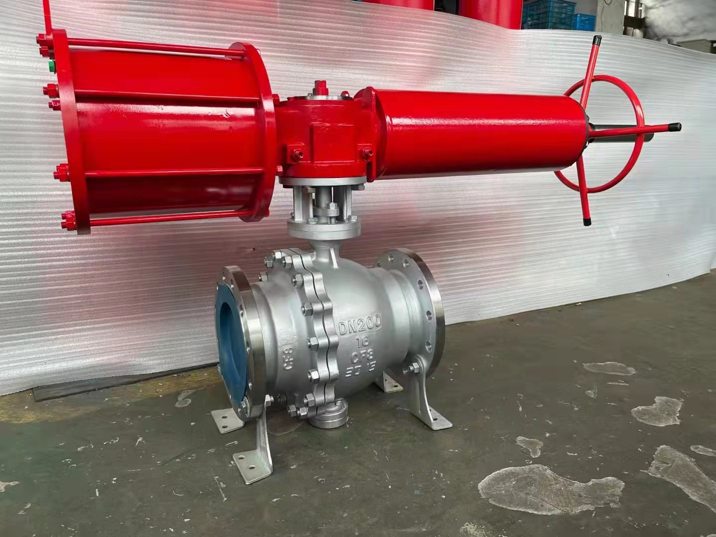 Q641F气动带手动一体式O型法兰球阀的介绍: